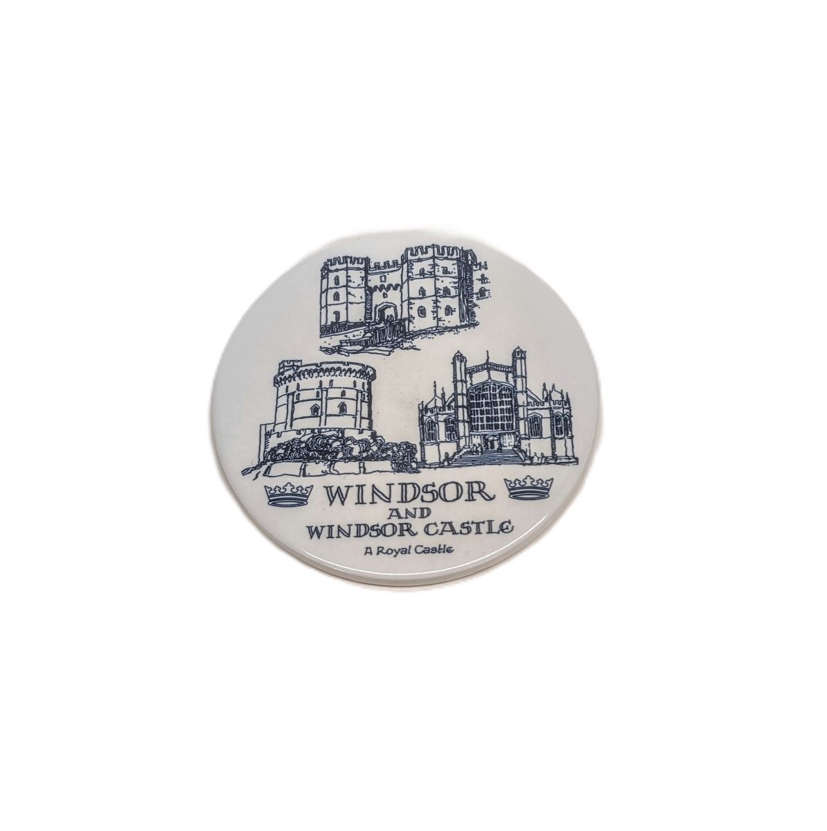 This beautiful ceramic coaster is the perfect souvenir. Depicting the most prominent landmarks found around Windsor, it offers exquisite illustrations of the Castle, the Round Tower, Henry the VIII gate, St George's Chapel, the Queen Victoria statue, the crooked house and the Guildhall, accompanied by names and dates. It is very cleverly executed offering a 360o interest point without repetition, framed by gilding at the top and bottom of the mug.