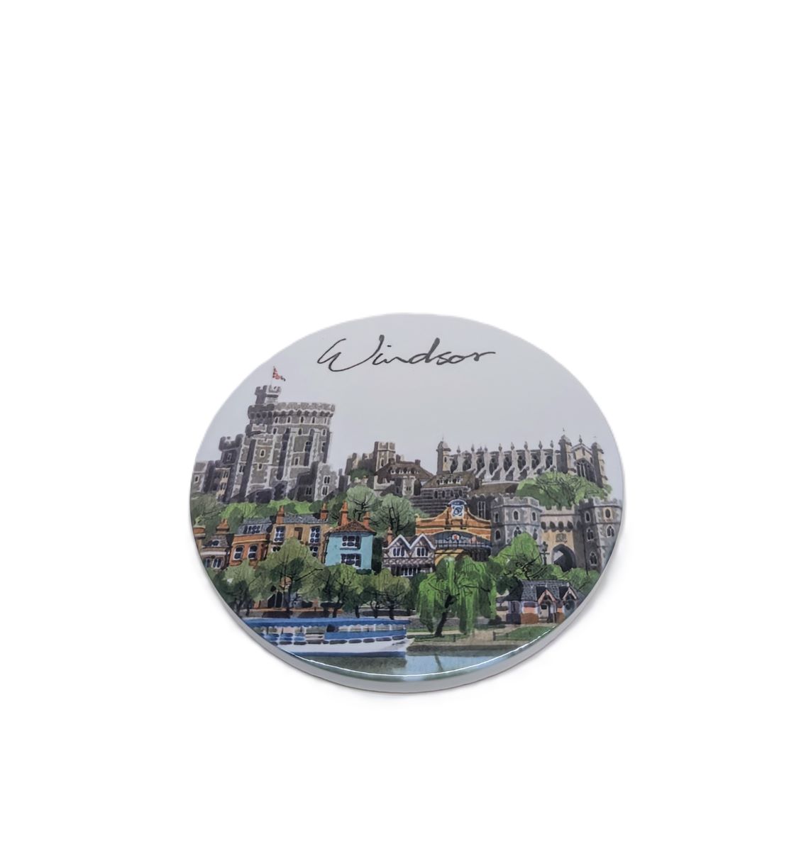 This lovely ceramic coaster is the perfect souvenir or gift for loved ones, displaying a beautiful watercolour illustration of Windsor. It is very well composed, offering a great view from the river Thames, historic buildings, the Castle itself, St Georges Chapel, and the Eton bridge.