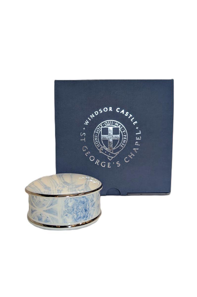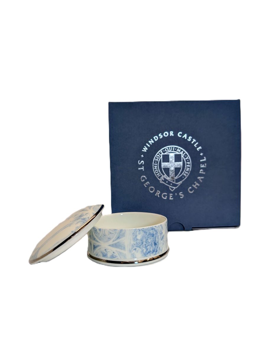 The stone vaulting, which soars above the heads of those in St George's Chapel, was the inspiration for this delicate blue and white design on china made in Stoke On Trent. These beautiful pieces of china were created as part of a bespoke range for St George's chapel shop.