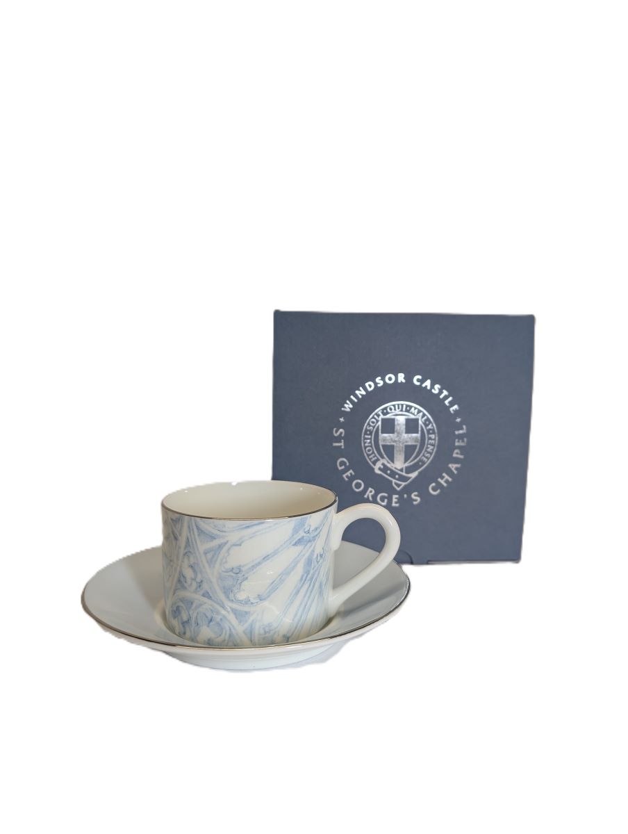 The stone vaulting, which soars above the heads of those in St George's Chapel, was the inspiration for this delicate blue and white design on china made in Stoke On Trent. These beautiful pieces of china were created as part of a bespoke range for St George's chapel shop.