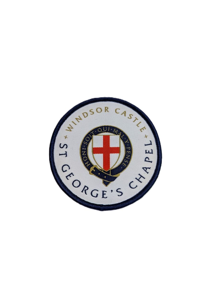 Lovely quality woven sew-on badge, presenting the logo of the Order of the Garter and the College of St George.